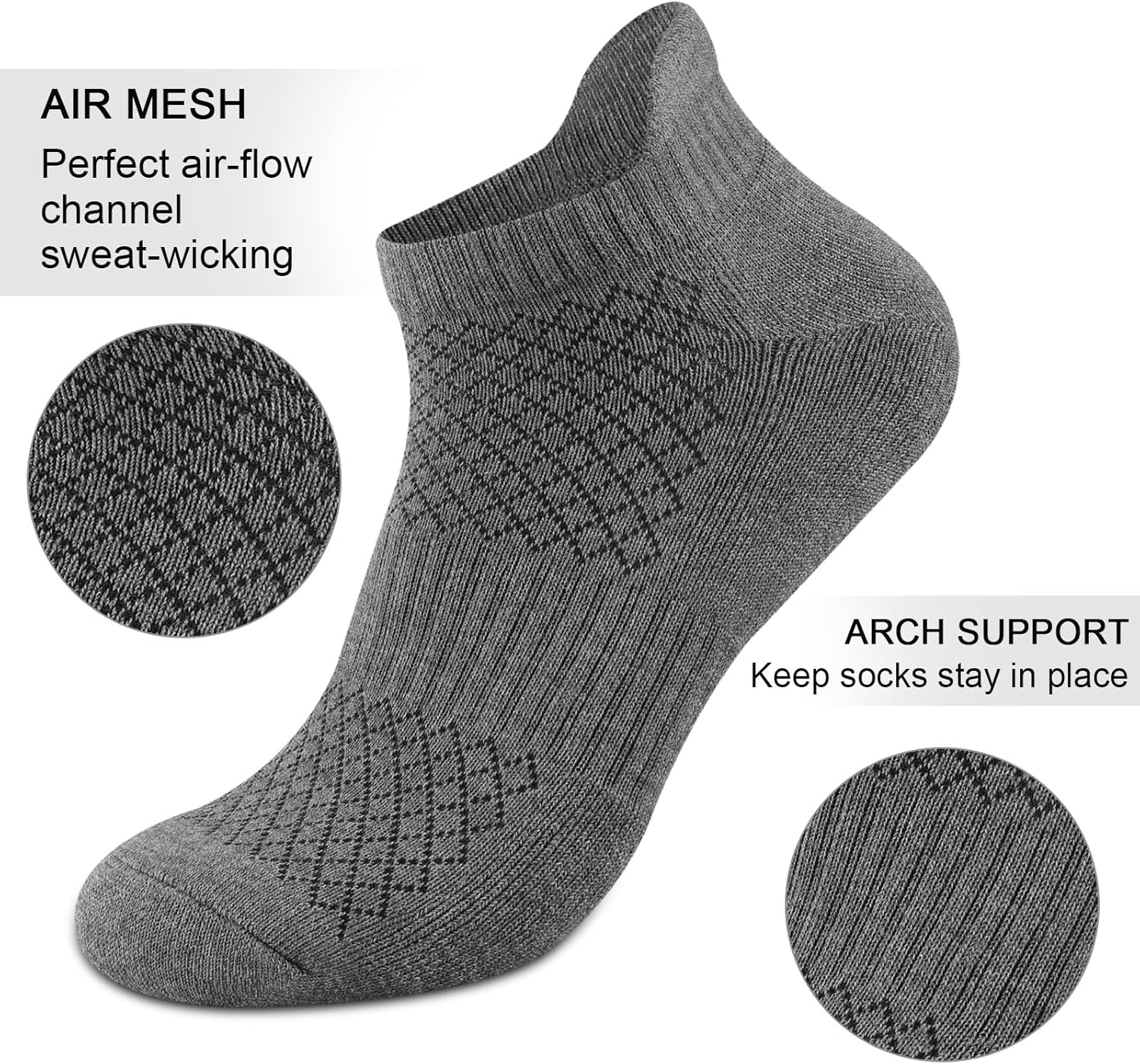 COOPLUS Mens Cotton Socks Ankle Athletic Cushion Running Socks for Men Moisture Wicking Breathable 6 Pairs Small-Medium Grey 6 Pairs