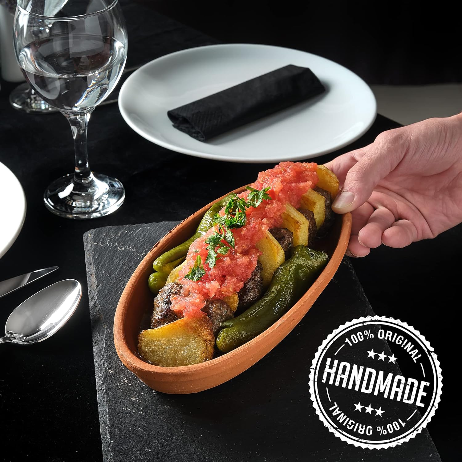 CRYSTALIA Handmade Clay Cooking Pan, Roaster Natural Ceramic Pan for Sausage Fish, Turkish Terracotta Bowl, Glazed Interior Clay Food Serving Dish