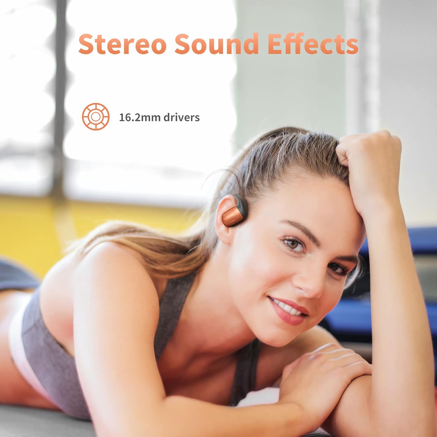 EASARS Open Ear Headphones True Wireless Open Ear Earbuds with 16.2mm Large Drivers, Bluetooth Earphones for Sport, Long Battery Life, Orange