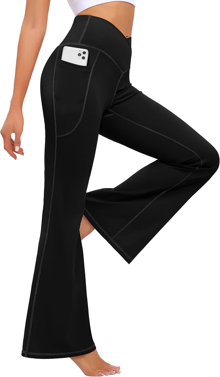 Ewedoos Flare Leggings for Women High Waist Flare Yoga Pants with Pockets for Women Bell Bottom Crossover Leggings 31 inches Medium 31 - Black