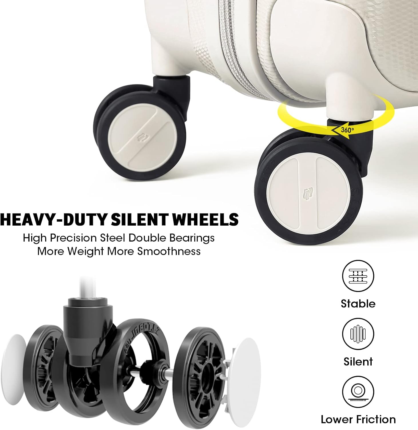 Hanke Lightweight Hardside Carry On Luggage with 8 Spinner Silent Wheels, Travel Luggage, Rolling Suitcase TSA Approved, White, 20-Inch Off White Clamshell Clamshell Carry-On 20-Inch