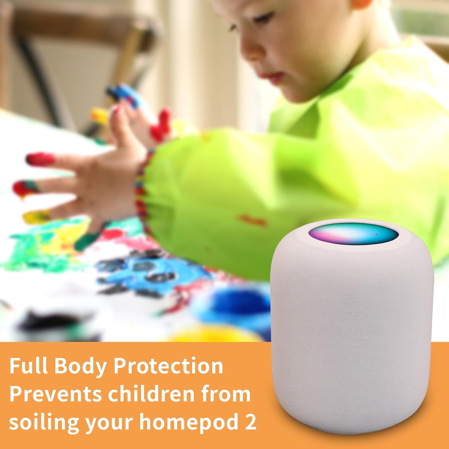 [Application] Speaker dust cover designed for 2023 HomePod 2nd Gen smart BT speaker,offers a proper fit.easy to put on and take off.(speaker not included) [Dustproof ] 360°Dust-Proof Design with mesh Nylonwhich effectively keeps the surface of the homepod 2nd clean.Although lightweight, it’s also made of high quality materials so your speaker will be fully protected. [Precise cutouts ] Comes with a Power Cord Hole,ensure the sound is not affected and enable easy access for charging..Can be placed anywhere. [Easy to clean]The homepod 2nd dust cover can be washed with water.After there is dust, just remove it from the product and clean it.