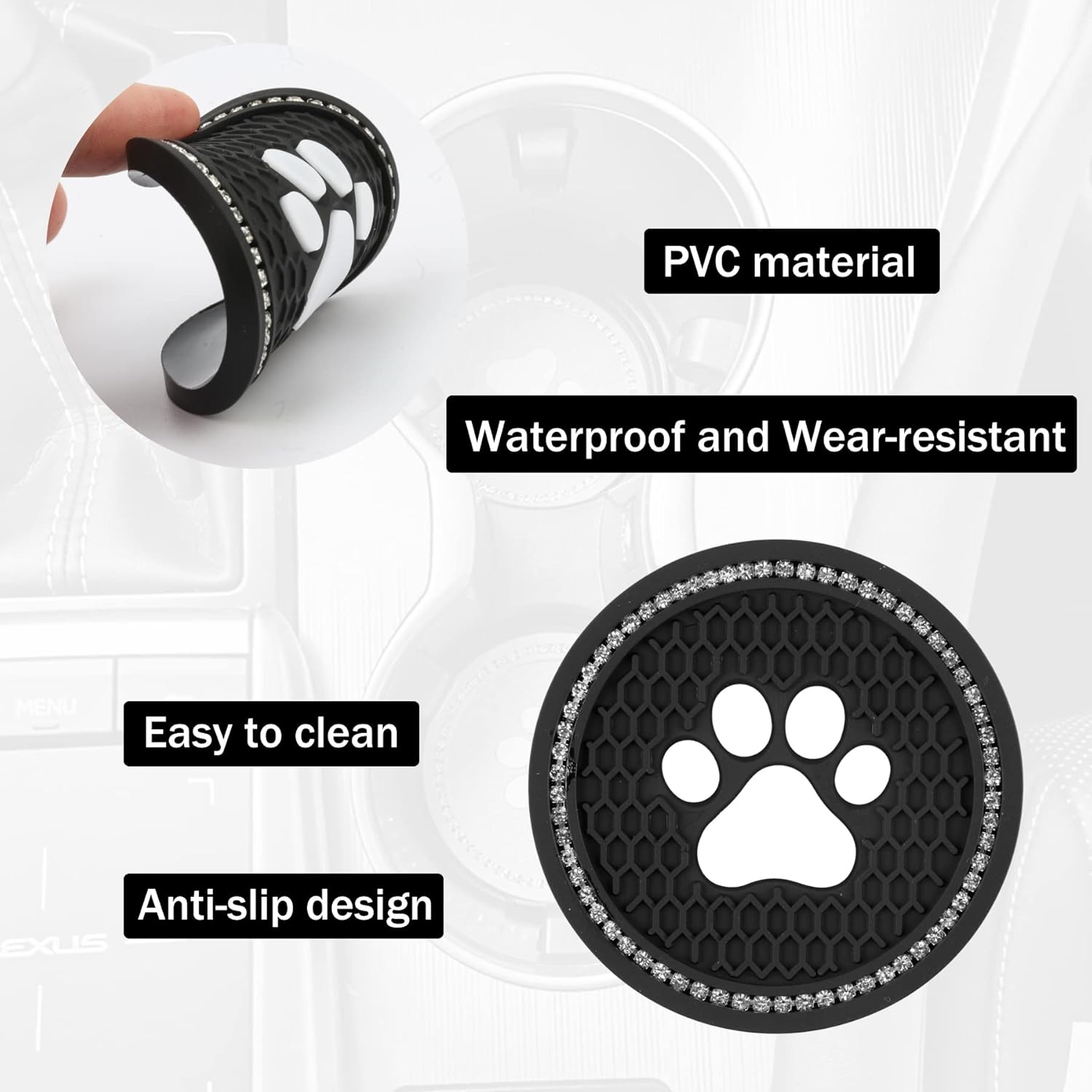 JUSTTOP 2PCS Bling Crystal Paw Car Cup Holder Coaster, Universal Auto Anti Slip Cup Holder Insert Coaster, Rhinestone Car Interior Accessories-Black