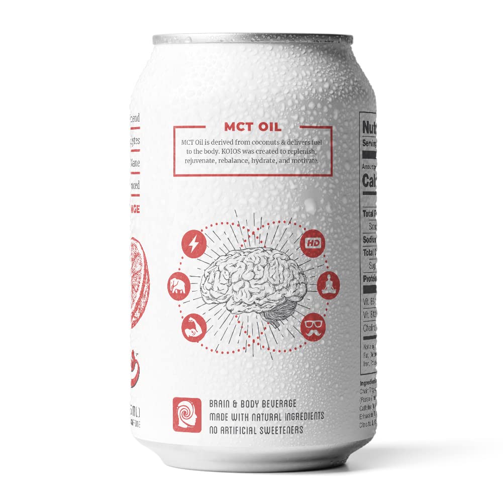 KOIOS SPARKLING BRAIN ENERGY - Blood Orange - Nootropic Beverage, Enhance Brain Function, Memory, Productivity, Contains Lion’s Mane Mushroom & MCT Oil, Natural Caffeine, Gluten-Free, Vegan (12 PACK)