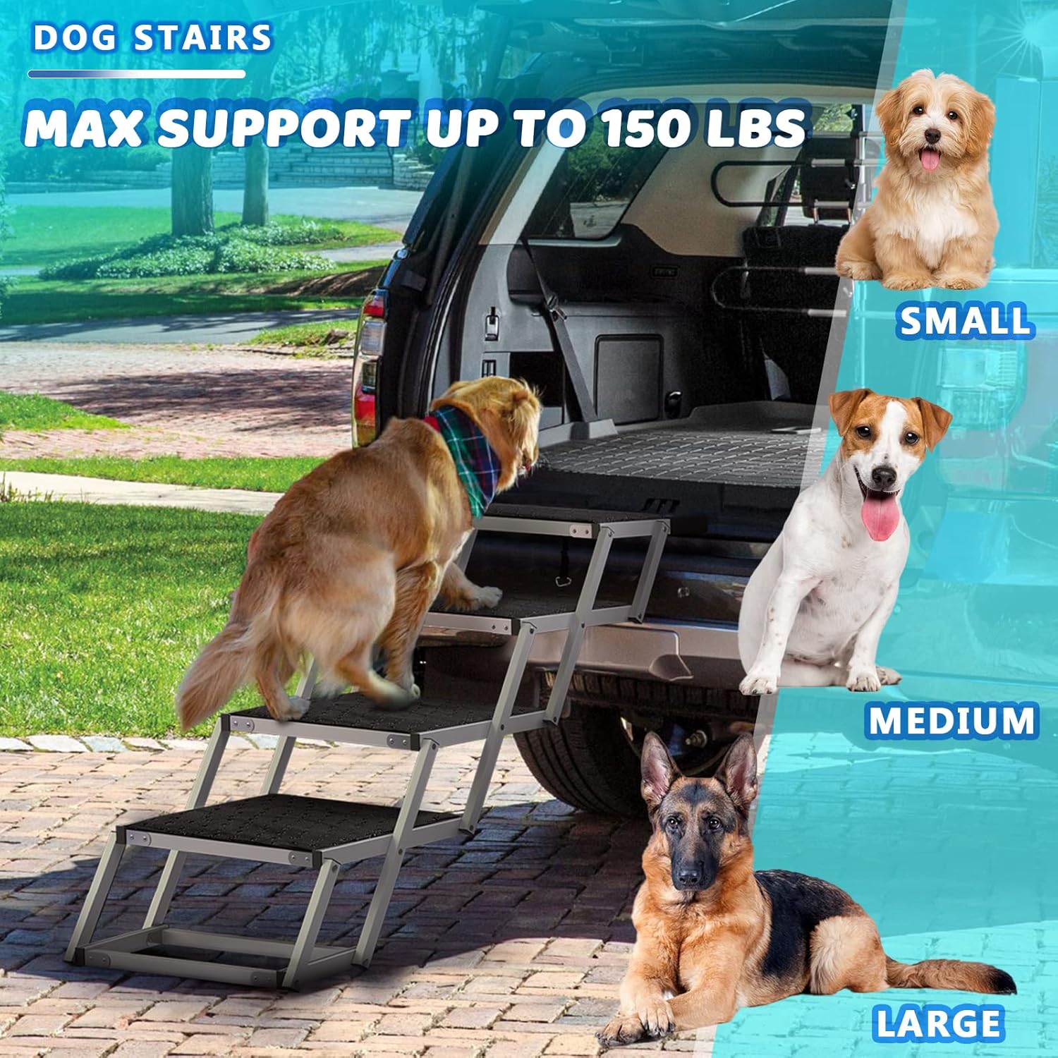 Lemberi Reinforced Dog Stairs for Car, SUV and Trucks Aluminum Dog Ramps for Small to Large Size Dogs with Non-Slip Surface, Lightweight Foldable Pet Car Steps Up to 250 lbs for Bed Oudoor Black 4 Steps Wide