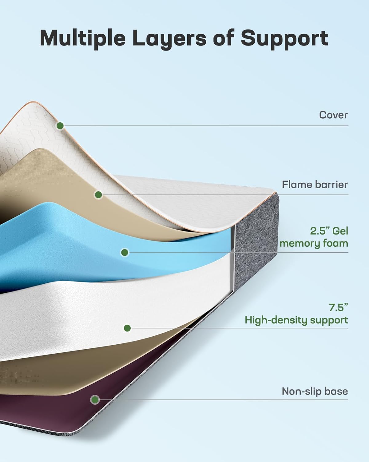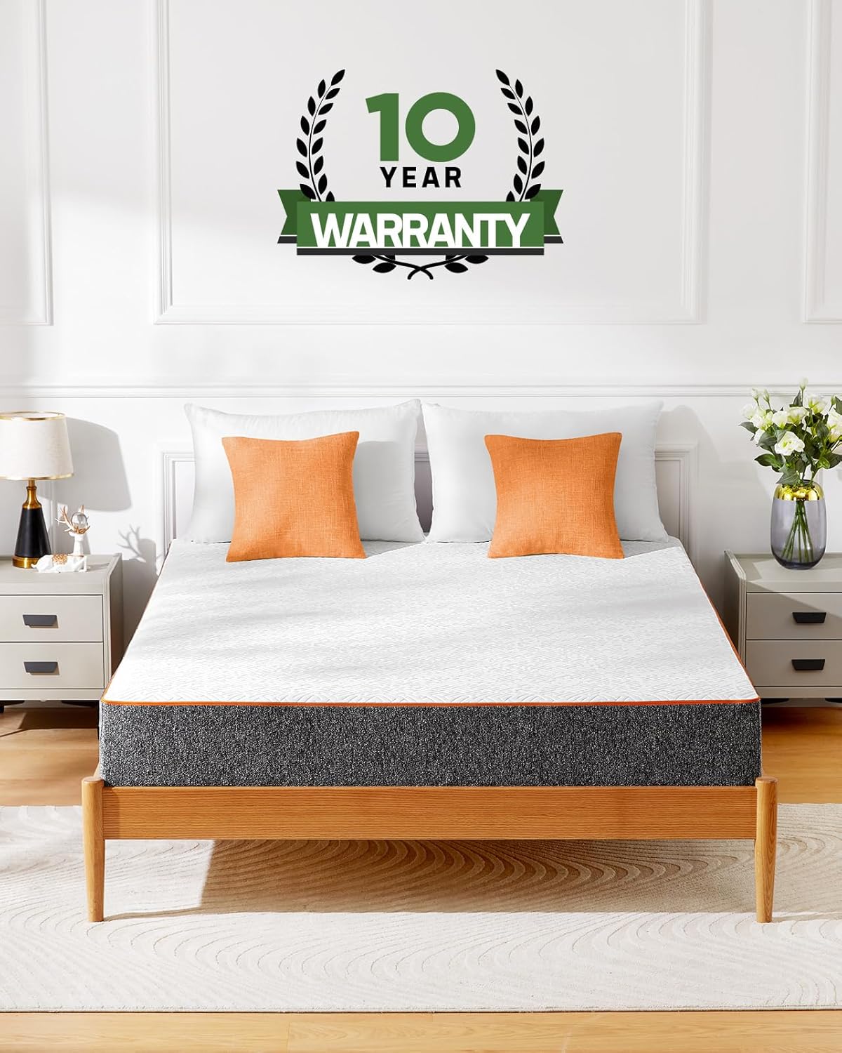 【Peace of Mind Sleep】Our queen mattress is subjected to rigorous evaluations, surpassing safety standards by 5X, rest easy knowing that the queen size mattress is crafted with your well-being in mind, providing a clean, hygienic, and allergen-reduced sleep space to ensure an exceptionally safe and healthy sleep environment for you and your loved ones. 【Innovative Zipper】Our zipper is ingeniously designed on the top of the mattress, allowing you to easily remove and clean the mattress cover without flipping the mattress. This Marsail queen mattress 10 inch is machine-washable, ensuring a hassle-free cleaning experience with no shrinkage or deformation. 【Cool and Deep Sleep】Our memory foam mattress is infused with cooling gel, helping to dissipate body heat and keeping you cool and comfortable throughout the night. Our memory foam mattress enhances the duration of your deep sleep, allowing you to rest better and prepare for a fresh start to the day. 【Embrace Your Shape】Designed with your ultimate comfort in mind, our queen size mattress in a box embraces your unique body shape, providing personalized support and medium softness that cradles you in a gentle, pressure-relieving embrace. Experience the perfect balance of contouring comfort and reliable support from Marsail queen size mattress 10 inch, allowing you to wake up feeling refreshed and re-energized every morning.