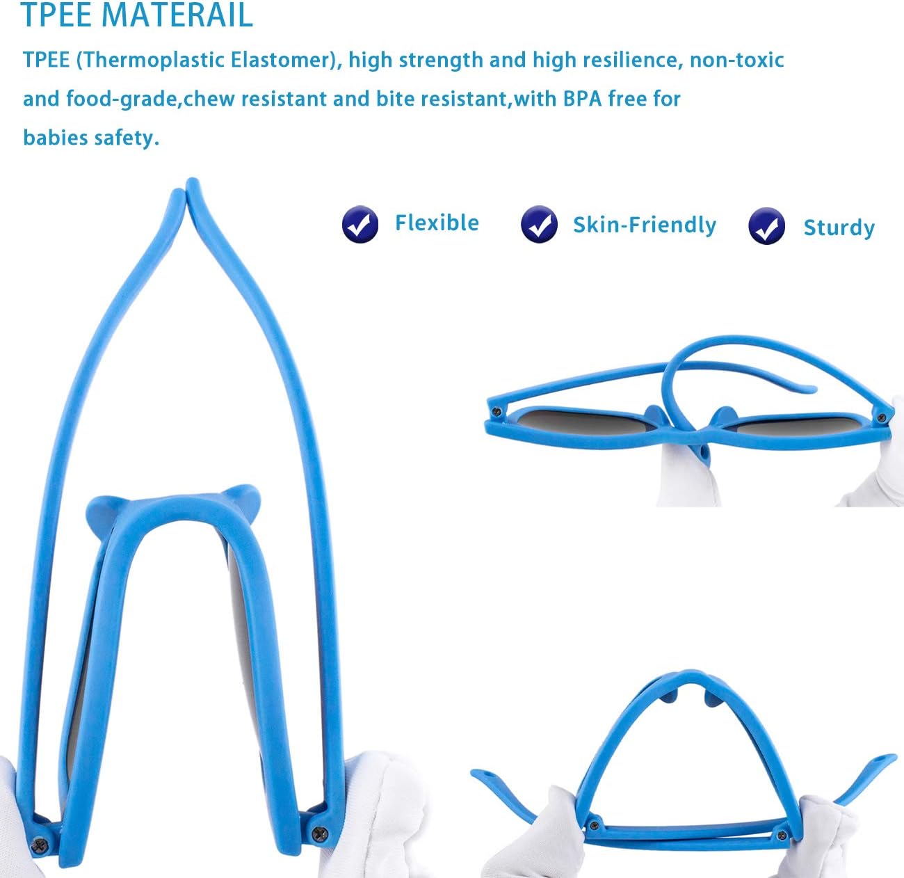 MAXJULI Baby Infant Sunglasses Safe, Soft, With Adjustable Strap 0-24 Months BPA Free 7002 D-black/Black+blue/Black