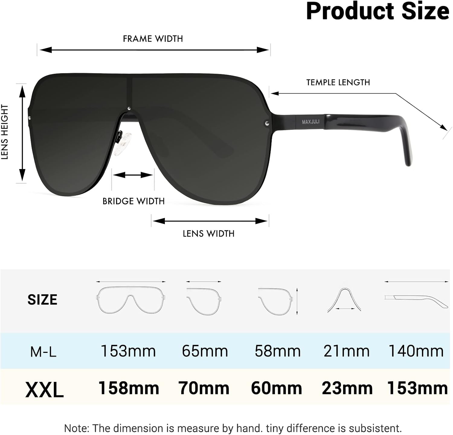 MAXJULI Polarized Sunglasses for Men and Women with Big Heads UV400 Protection Sun Glasses Ideal for Driving Golf 8132 Matte Black /Gray Fit XXL,70 Millimeters