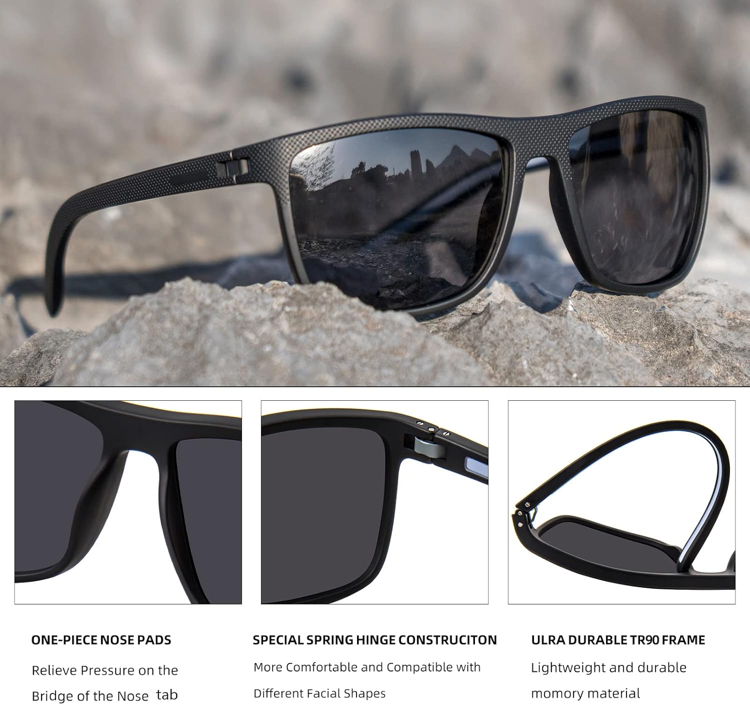 MAXJULI Polarized Sunglasses for Men, Sports Driving Fishing Light Frame UV400 Protection Square Sun Glasses 8135 C2 Black+grey Frame / Grey Polarized Lens