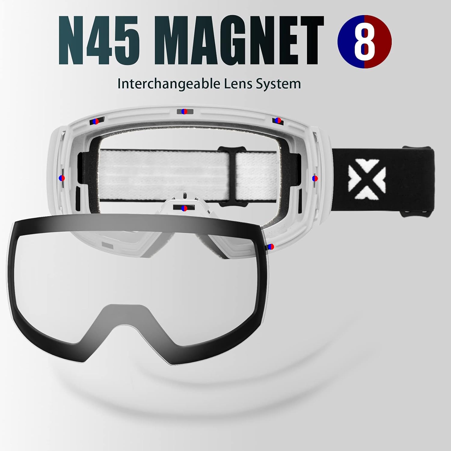 MAXJULI Ski Goggles Men Women,OTG Snow Goggles with Magnetic Interchangeable Anti-fog HD Lens UV Protection M6 A0-white Frame/Clear Lens