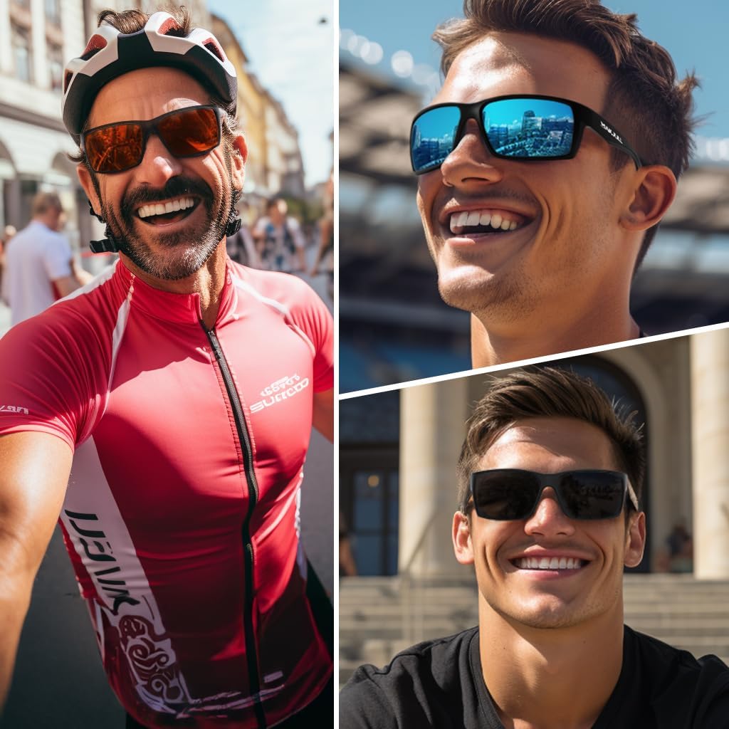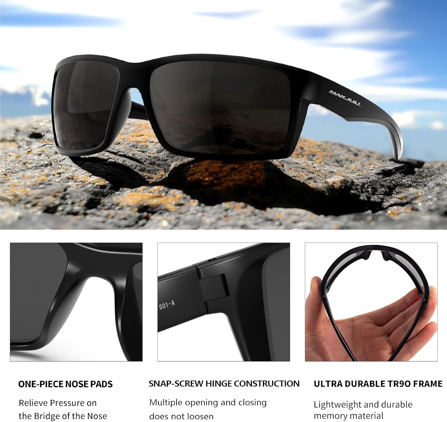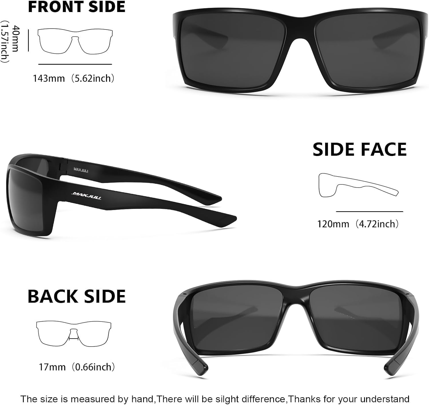 MAXJULI Sport Polarized Rectangular Sunglasses for Men Women, Sun Glasses 8122 NEW C1 Black+grey