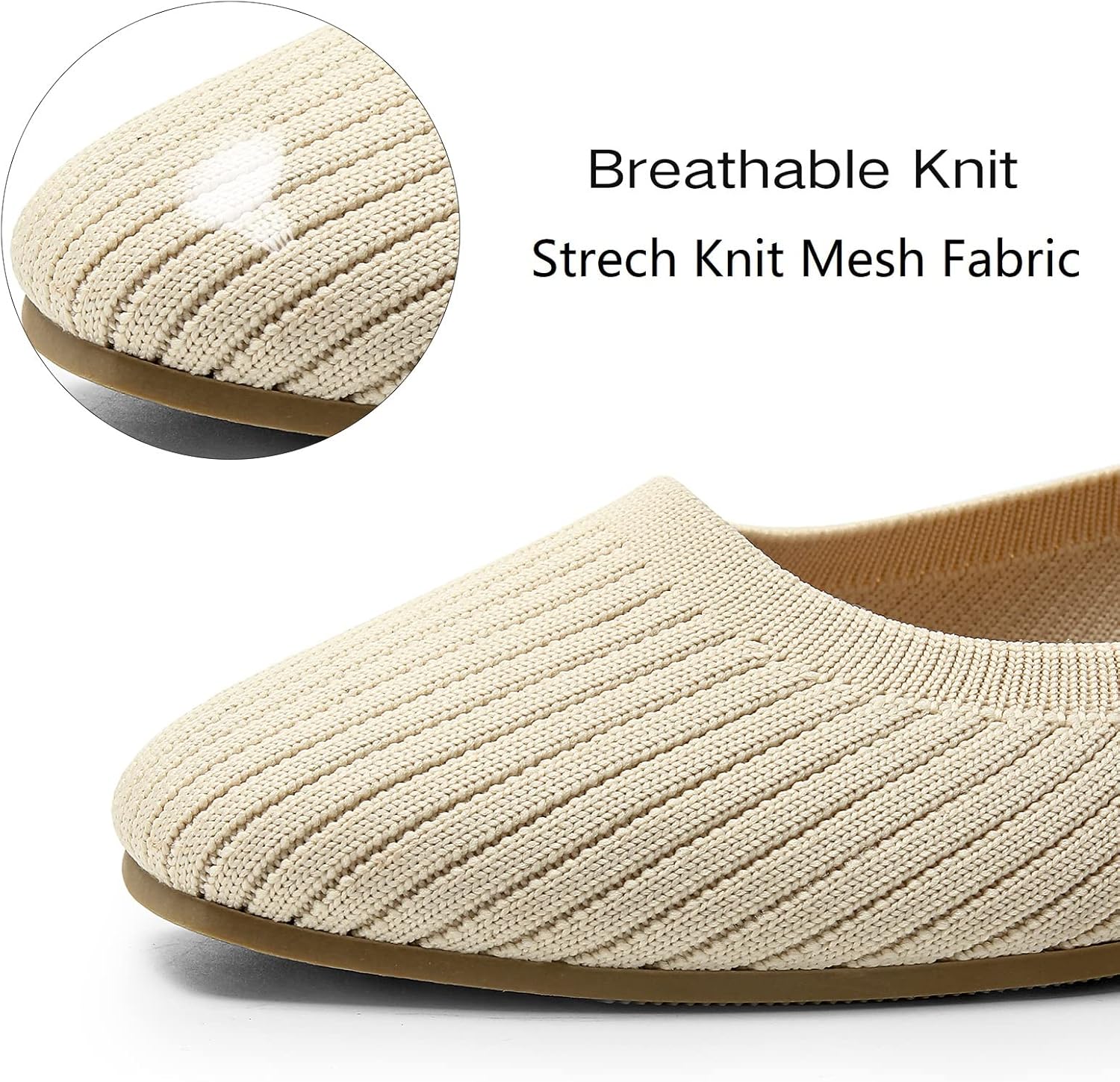 Rubber sole 【SOFT & COMFORT】:Our womens flat shoes have 2x memory foam foot-bed, make you walking on the clouds.Skin-friendly knit make your feet breathing and comfort all the day. 【VEGAN MATERIAL】: These flat shoes women available in premium vegan materials.Comfortable flats for women with soft mesh brighten up your dress with every simple step. 【SLIDE INTO STYLE】: These women's flats offer a minimalist, sophisticated solution for easy fashion,match all outfits & oocasions.