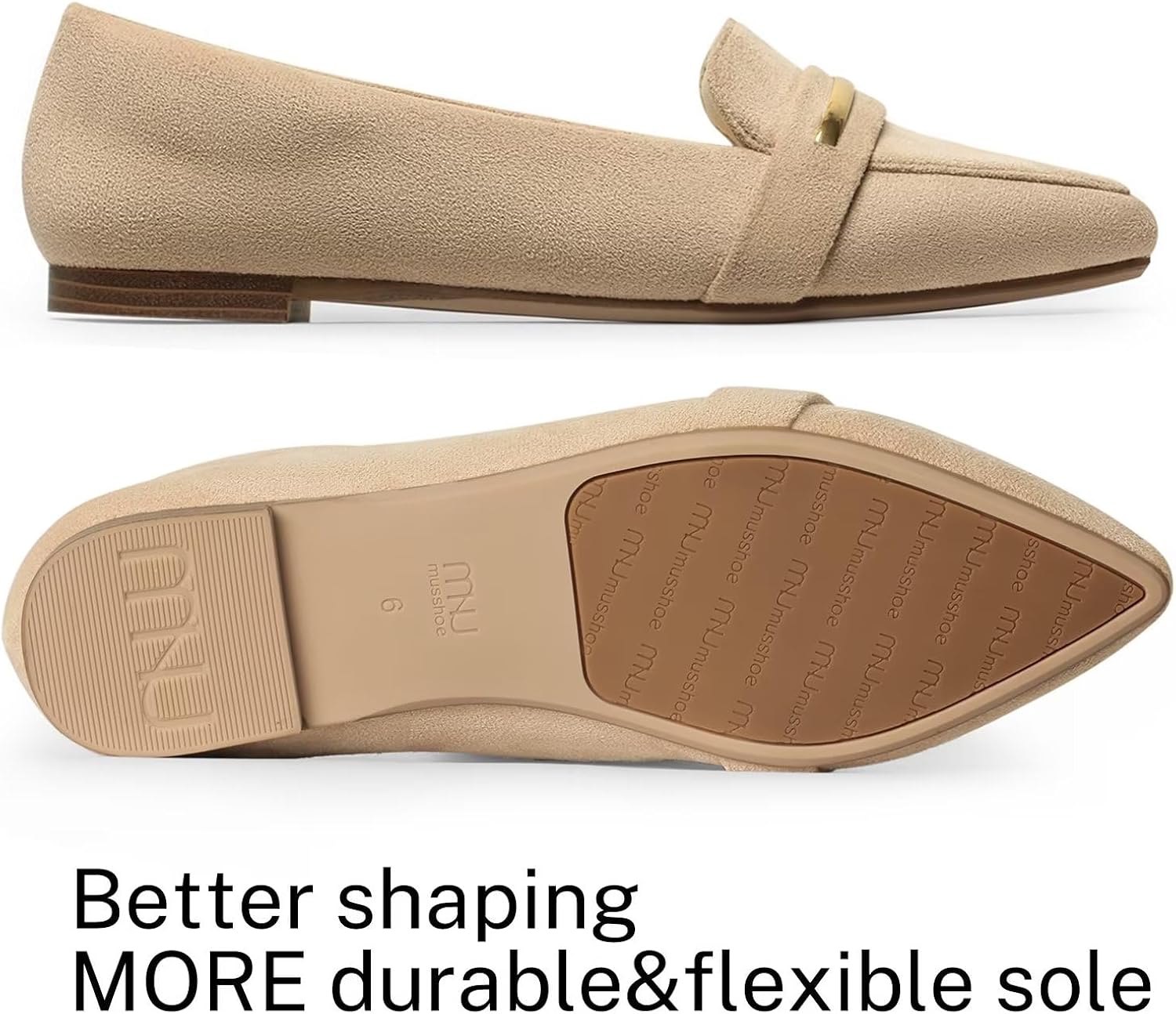 MUSSHOE Flats Shoes Women Pointed Toe Womens Flats Loafers 8.5 Nude Suede