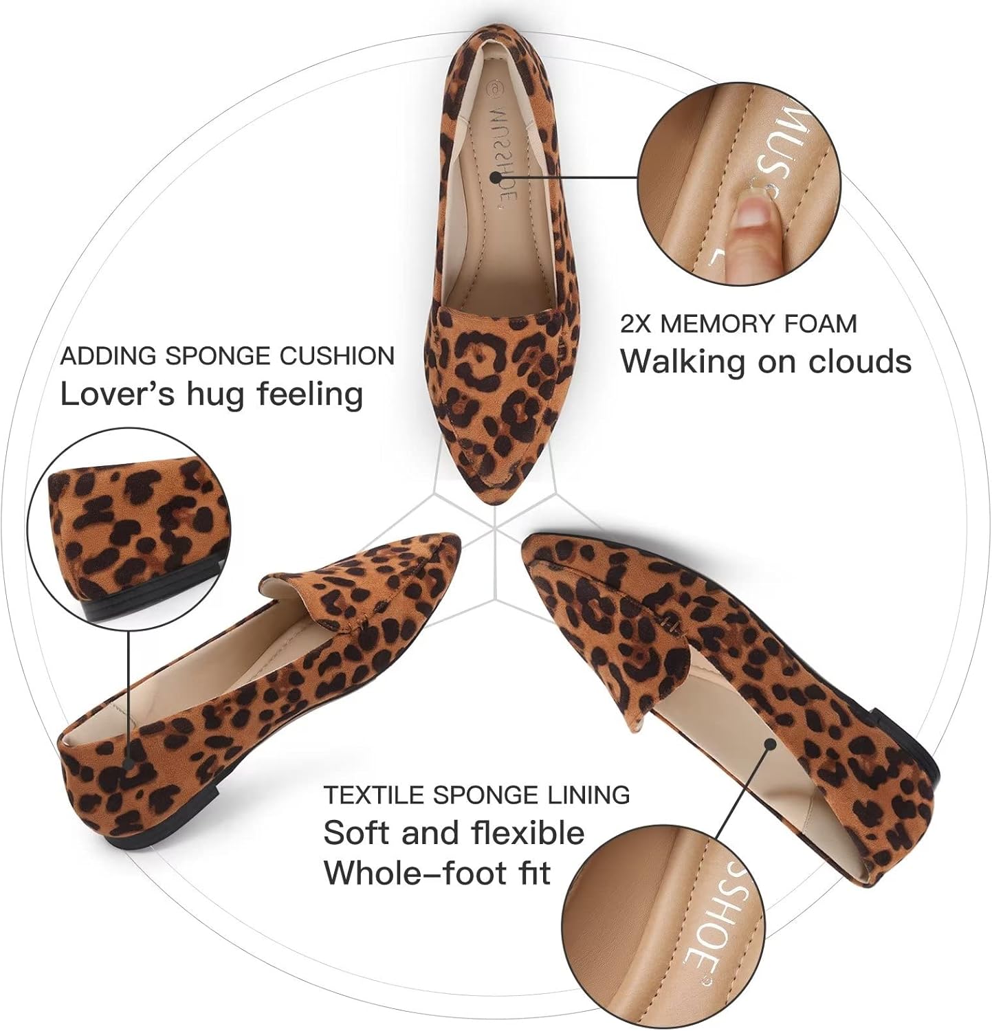 MUSSHOE Loafers for Women Comfortable Pointed Toe Memory Foam Women's Loafers 8 Leopard