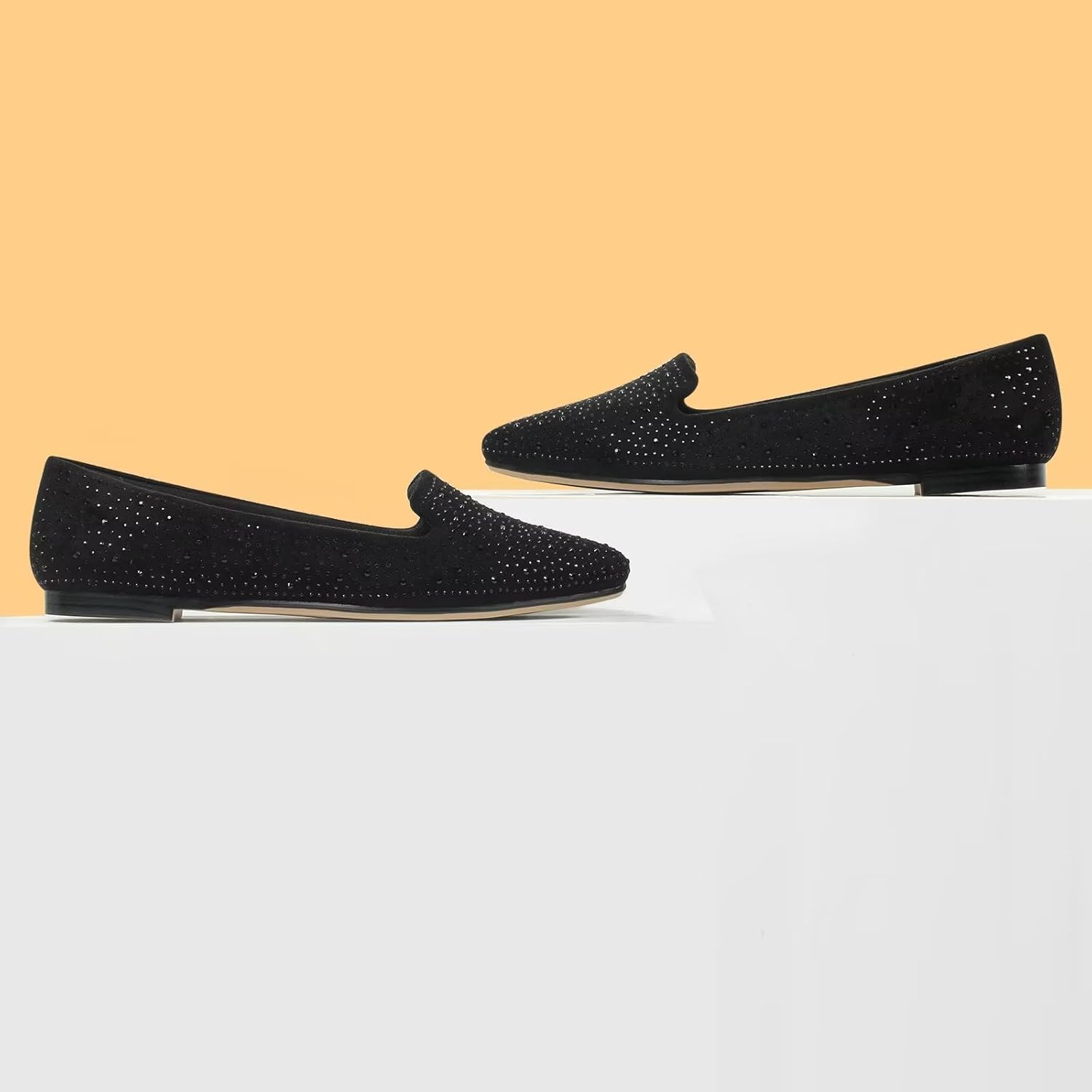 MUSSHOE Women Flats Comfortable Pointed Toe Rhinestone Flats Shoes for Women 8 Black Suede