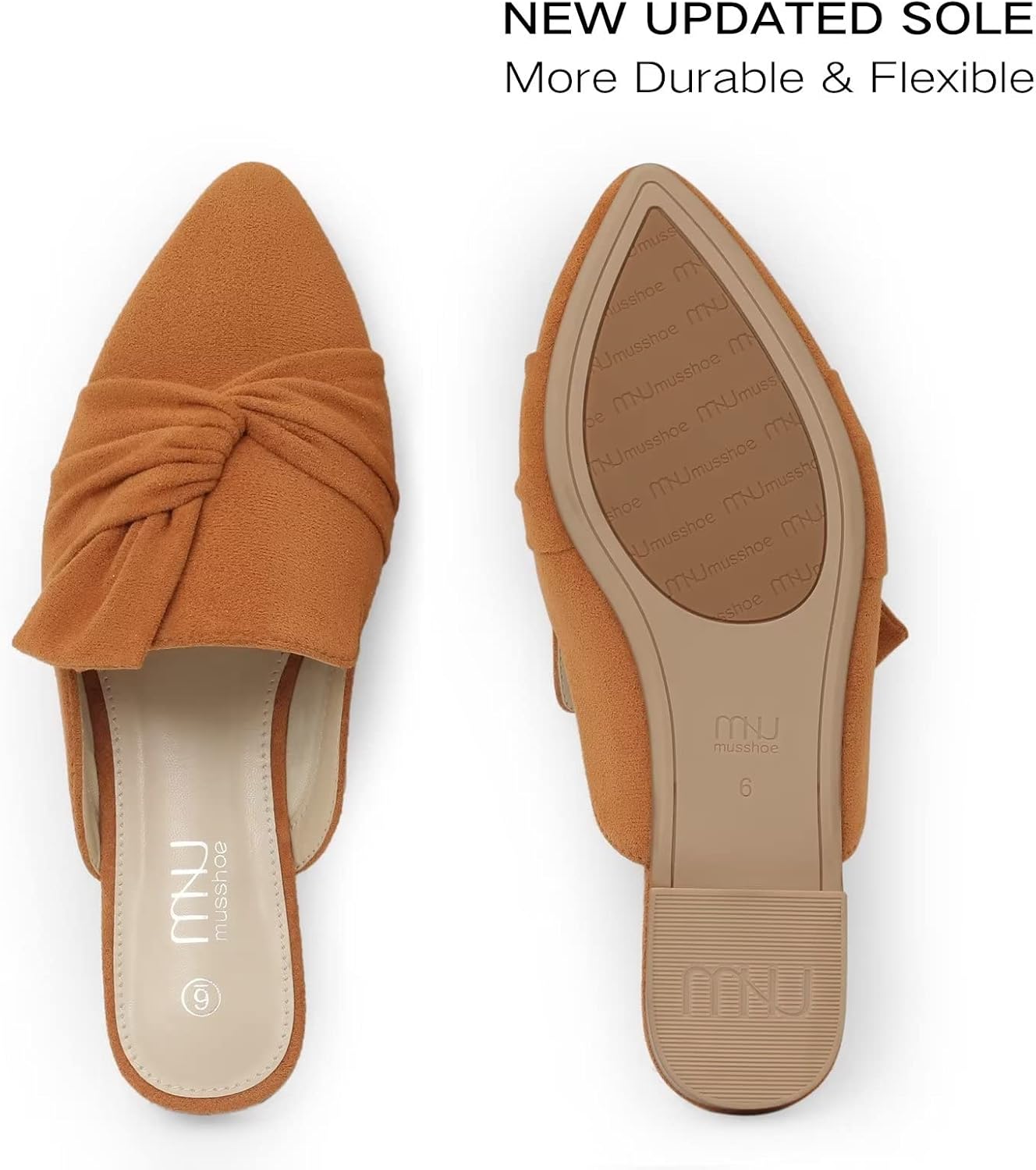 MUSSHOE Women Mules Slip On Comfortable Pointed Toe Mules for Women Flats with Knot 11 Tan Suede