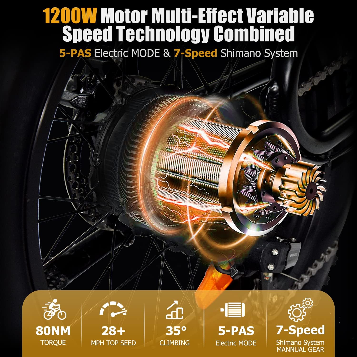 SMARTRAVEL Electric Bike 20" Fat Tire for Adults, 1200W Brushless Motor with 17.5Ah Battery, Shimano 7 Speed Gears, 28MPH E Bike for Commute Mountain Beach Snow Riding,DK400