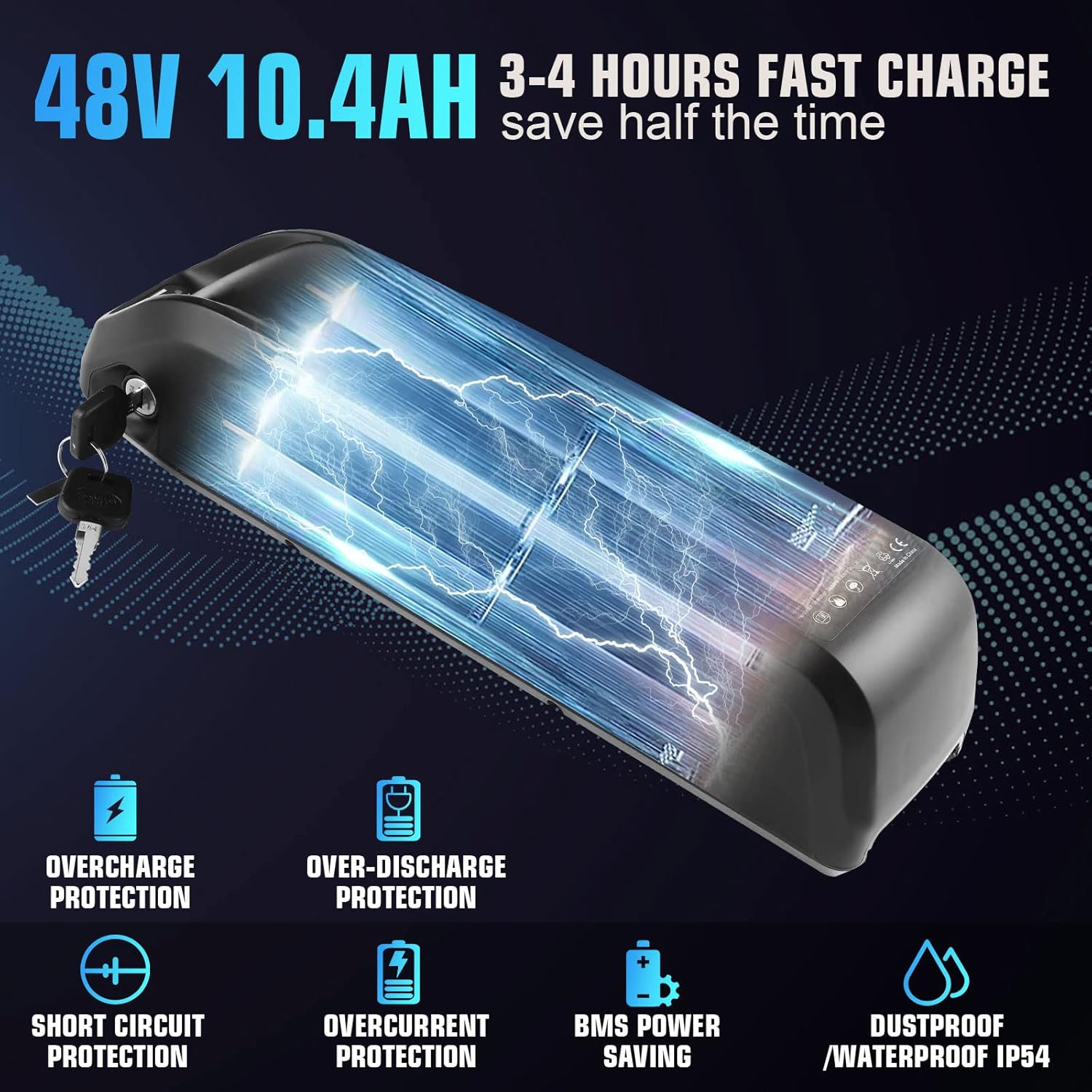 POWERFUL MOTOR & BATTERY: 48V 500W high-speed brushless motor gives you all the power you need for daily commuting or weekend exploring. You can ride up to 20mph when turning the throttle to end. The riding range of 48V 10.4 Ah battery varies from 26miles(max range in pure power mode) to 45miles (max range in pedal assistant mode). Plenty for a day’s adventure or most trips to work and back. TURN THROTTLE OR PEDAL ASSIST: We provide 5 levels for power assistance. You can choose to turn the throttle or step on the pedal to activate the motor. You can switch between pedal assist and thumb throttle at any time. The five-levels power output is sufficient to meet your daily commuting needs and outdoor climbing needs. You can add a burst of speed with the throttle, which is ideal for pulling away from traffic lights. EXCELLENT CONFIGURATION: LCD intelligent colorful display is more convenient for you to observe the speed, mileage and power levels of your riding. With a larger 27.5-inch wheel diameter, the body length will not be compromised and shortened due to the control of the package size. It allows you to ride comfortably without feeling cramped. Larger wheels hold more speed than smaller wheels due to rotational inertia, making the 27.5" a faster ride than a conventional 26" wheel. COMMUTER OR ADVENTURE DUAL USE: Large-capacity battery, multi-speed power output, suitable for different road conditions, commuting of different mileage, and equipped with standard mountain riding wheels, 21-speed transmission and shock-absorbing front fork and seat, weekend adventure off road on this bike with your friends is also a great choice.