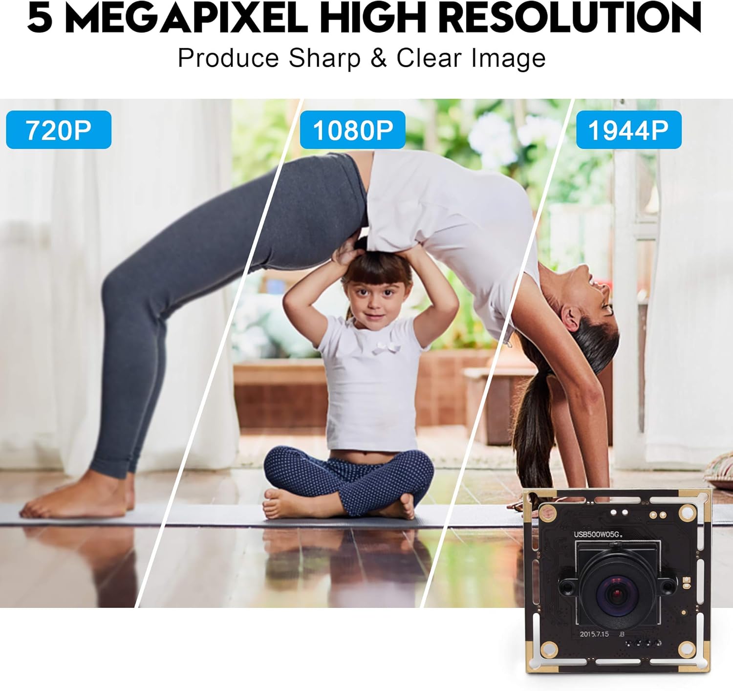 【Super Aptina MI5100 Image Sensor】5 Megapixel USB camera moudule adopt high quality Aptina CMOS MI5100 Sensor, deliver sharp images effectively. High defination with low color reproduction deviation. Frame rate 2592x1944 at 15fps, 1920x1080 at 30fps 【100°No Distortion & Wide Applications】 This USB camera module build up with a 100° no distortion lens which deliver a super wide angle without deformed,perfect for live streaming, video conference, online teaching, gaming,and security surveillance, medical or industrial machine. 【Wide Applications】5MP usb camera module with high defination with low color reproduction deviation < 20%, deliver sharp image and accurate information, great fit for high standard medical industry requirements.Wide application for machinary equipment,all-in-one machine,robot,scanner,industrial machine,medical auxiliary equipment... "【Plug & Play 】Drive-free usb camera module is very easy to use, just need to plug the camera to USB port, no need to download or install any drivers. High speed USB 2.0 usb camera also support OTG protocol(UVC)."