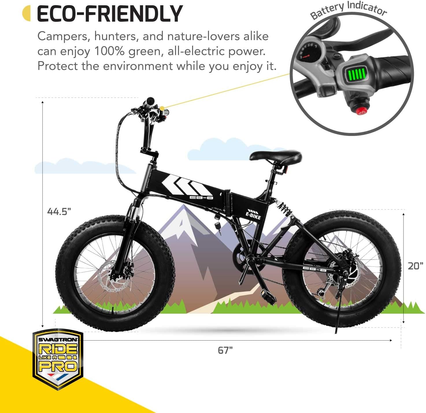 Swagtron EB-8 Outlaw 20” Fat Tire eBike with Enclosed Removable 36V Battery 350W Motor Power Off-Road Foldable Electric Bike Dual Disk Brakes 7-Speed Shifting Built for Trail Riding