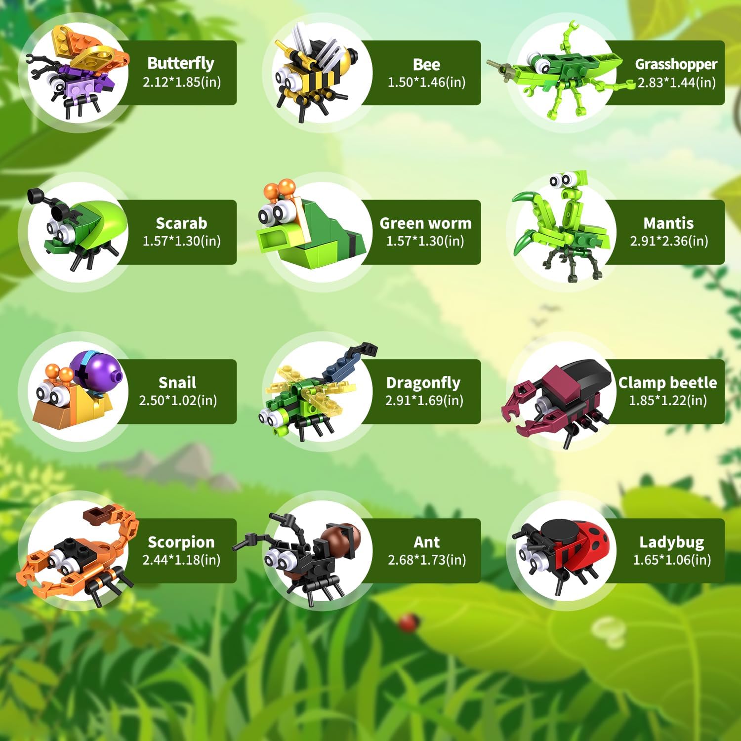 WINGIFT 24 in 1 Pre Filled Insect Block Set-24 Pcs Mini Building Blocks Toys, STEM Building Blocks Toys, Classroom Prize Toys, Party Favor for Kids, Birthday, Goodie Bags, Carnival Prizes
