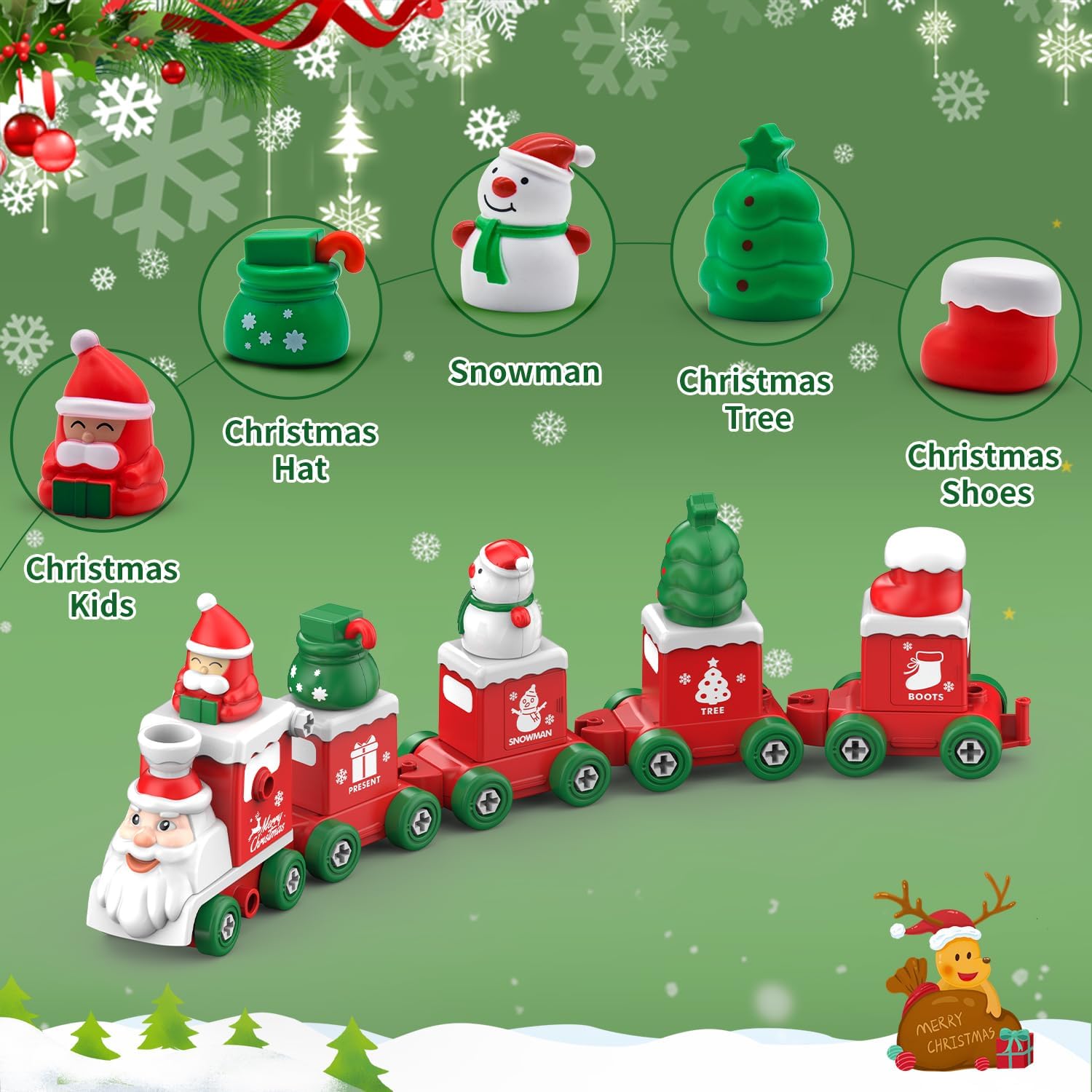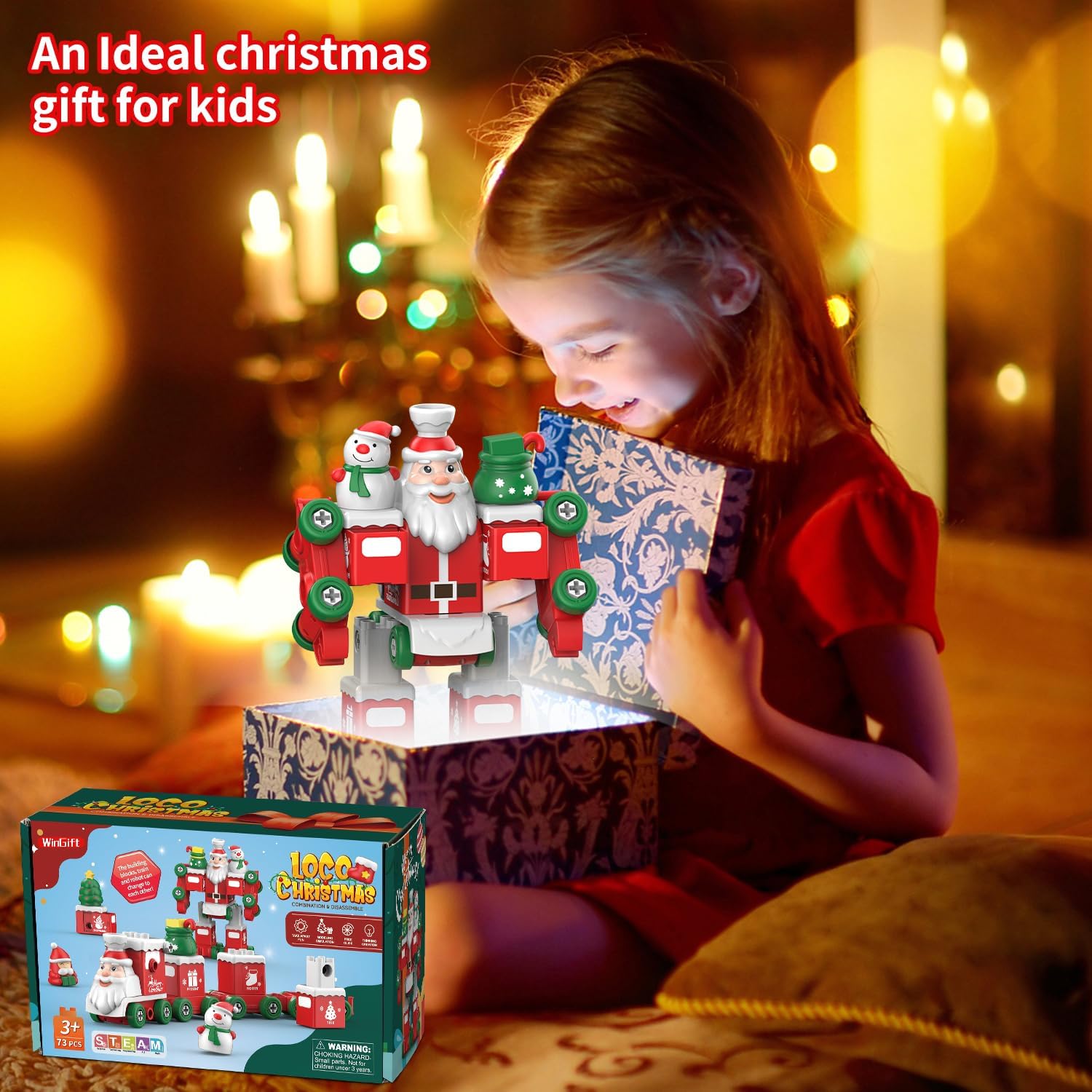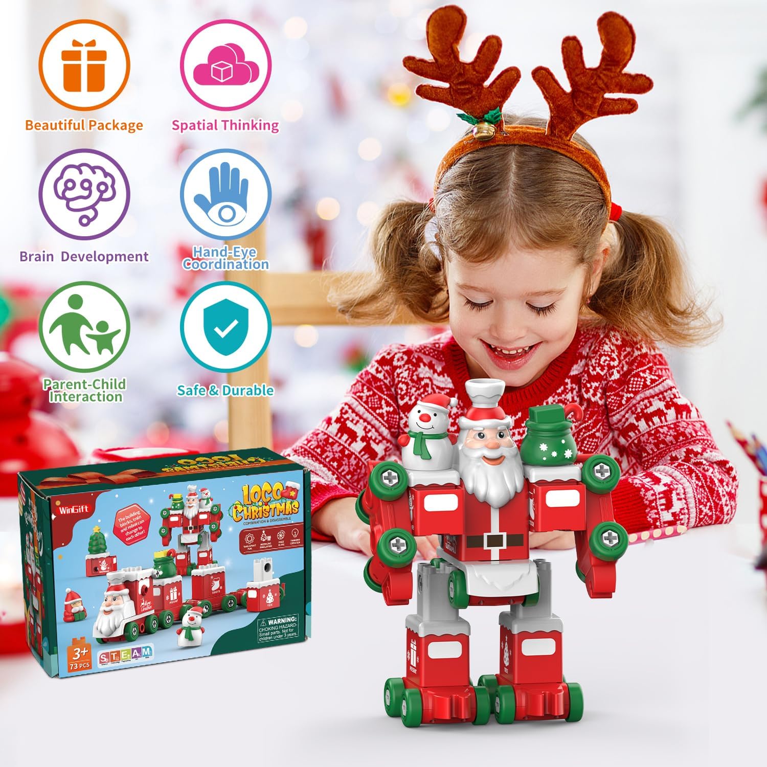 WinGift Party Favor for Kids,STEM Christmas Train Building Toys,Santa Transforming Robot Toys,Christmas Construction Toddler Toys,Christmas Puzzle Indoor,Great for Boy and Girl Ages 3+ Christmas Robot Building Block Set