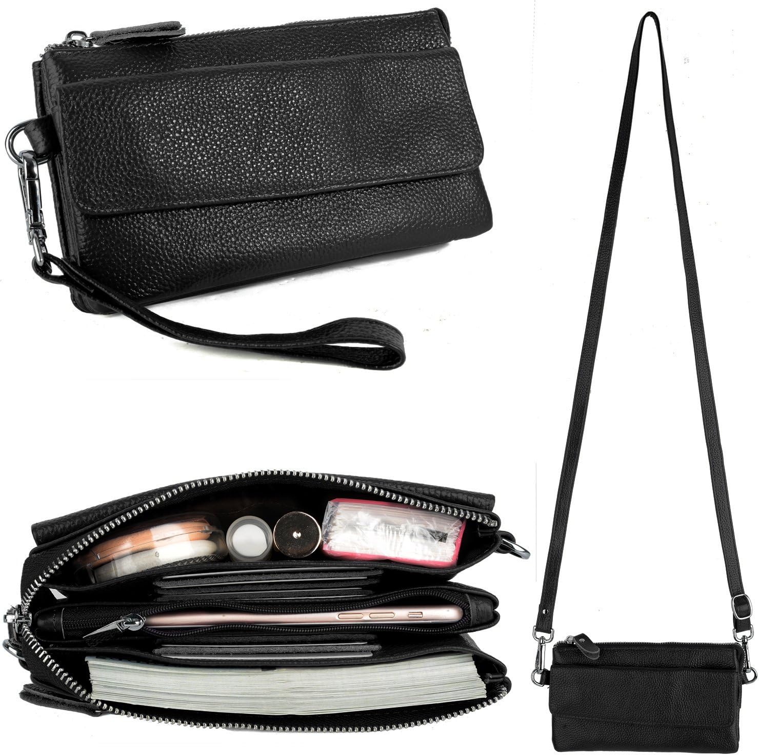 YALUXE Women's Leather Smartphone Wristlet Crossbody Clutch with RFID Blocking Card Slots Black Black 2.0