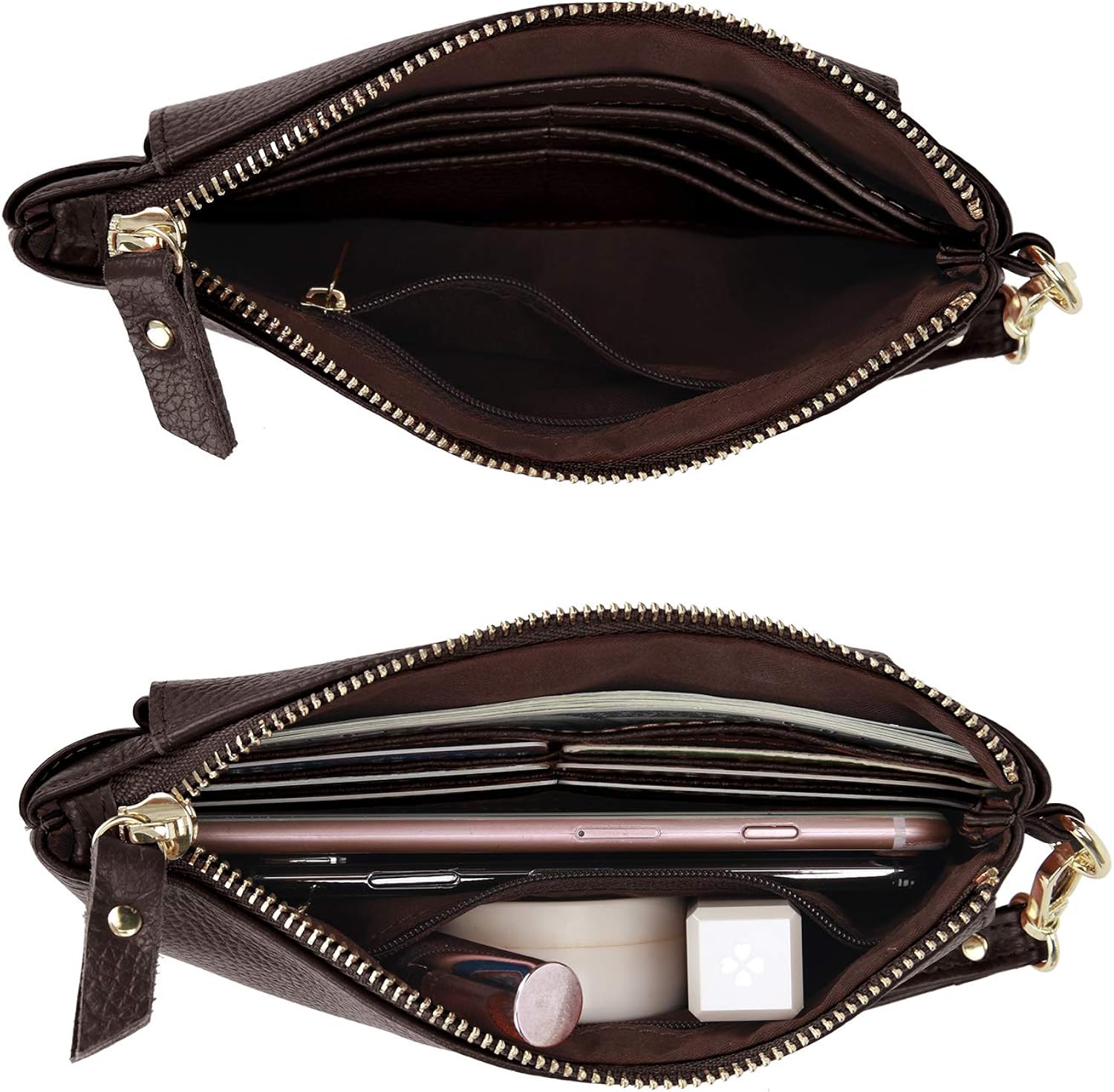 YALUXE Wristlet for Women Genuine Leather Crossbody Clutch Cellphone Smartphone Wallet Vintage Purse Travel 09coffee