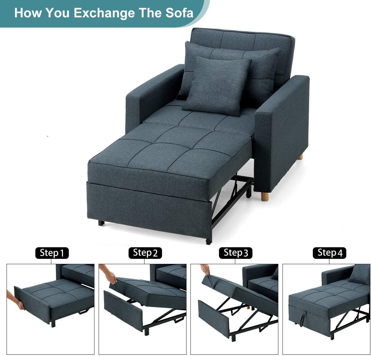 3-IN-1 Convertible Chair Bed - YODOLLA Single sofa bed chair is easy to make chair that turns into a bed. No matter what room it is, whether it is a large room or a small room, this is your best choice! Great chair beds for adults twin! 3 Levels Adjustable Backrest - YODOLLA sleeper chair equipped with a three-level regulator, which can adjust the angles of 108°, 145° and 180°. Adapt to different scenarios from different angles. You can find your most comfortable position to relax. Extra Large Sofa Chair - 40-Inch wide design is available for loveseat, which is bigger then a regular chair. You can share it with your lover and you can sit together and watch TV without any issues. Breathable and Durable - High-quality linen fabric makes it more comfortable to touch and use. The cloth cover is easy to remove and supports machine washing, which is more convenient and last longer service life.